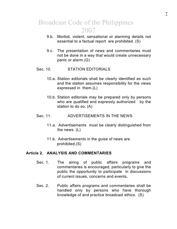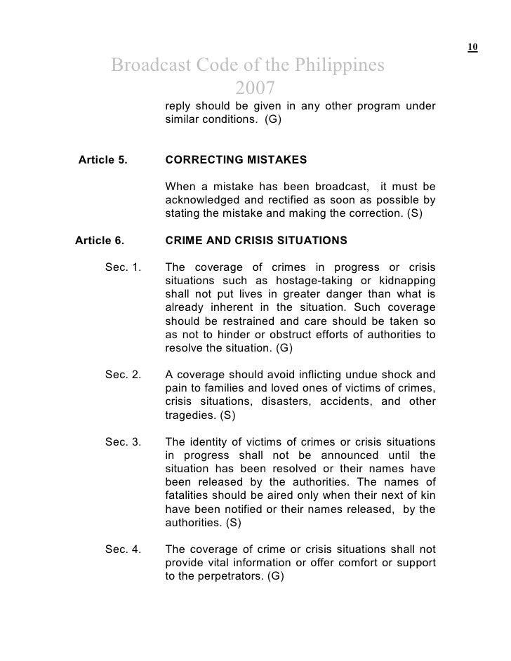 8 0.1INTRODUCTION The Code represents the minimum standard for broadcasting in the Federal Republic of Nigeria. The Code shall be applied in the spirit as well as in the letter in accordance with the professional ideals of broadcasting. 0.2 GENERAL PRINCIPLES