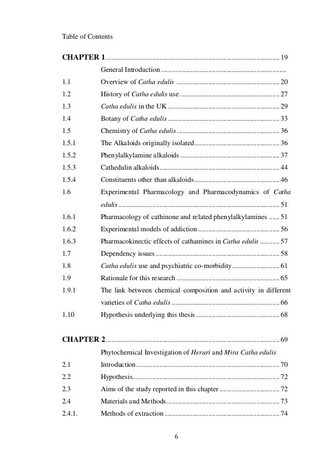 This image illustrates table of contents phd thesis.
